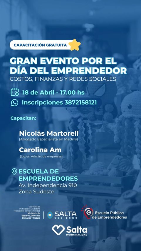 La Municipalidad de Salta realizará un encuentro en el marco del Día Mundial del Emprendimiento, donde profesionales brindarán herramientas para impulsar el crecimiento de los negocios locales. Se llevará a cabo el próximo jueves 18, a las 17 hs, en el Centro Cultural “Dino” Saluzzi (Independencia 910).