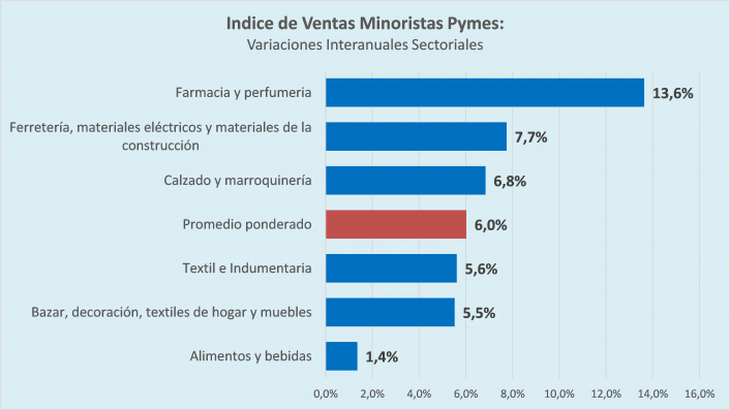 El informe del CAME destaca farmacia y perfumería, materiales eléctricos y de la construcción, calzado y marroquinería como los rubros con mayores aumentos.